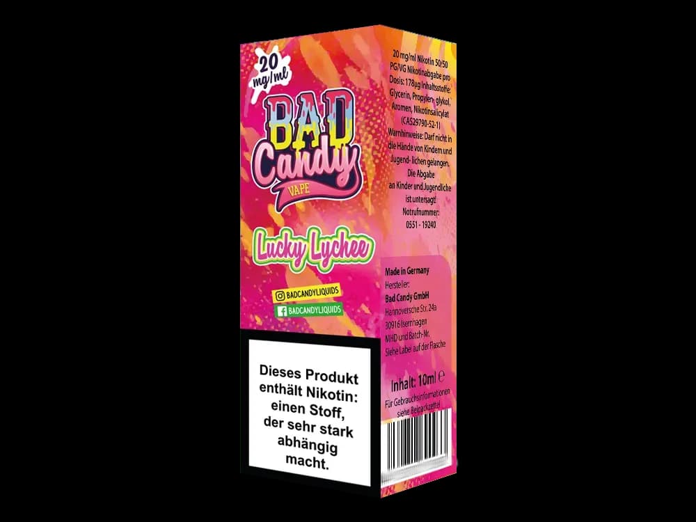 Das Liquid Lucky Lychee von Bad Candy Liquids ist ein Nikotinsalz-Liquid, das sich ideal zum puren Dampfen eignet. Es entfaltet beim Vapen intensive Aromen von Lychee, Maracuja, Zitrone und einer angenehmen Frische. Erhältlich in den Nikotinkonzentrationen 10 mg/ml und 20 mg/ml, wird jede Bestellung in einer 10-ml-Flasche geliefert – perfekt portioniert für den täglichen Gebrauch. Das Produkt besticht durch seinen fruchtigen Geschmack und überzeugt sowohl Anfänger als auch erfahrene Dampfer.