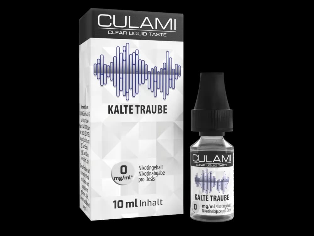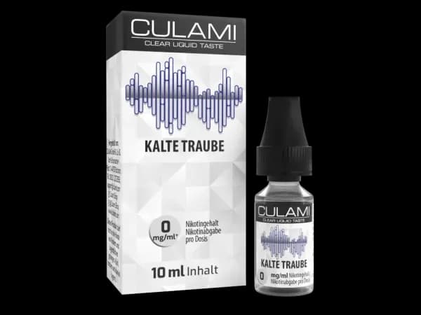 Die 10 ml Liquids von Culami sind in diversen Nikotinstärken – 3 mg/ml, 6 mg/ml, 12 mg/ml – sowie in einer nikotinfreien Variante erhältlich. Diese gebrauchsfertigen Liquids eignen sich hervorragend für Ihre E-Zigarette und versprechen ein intensives Dampferlebnis. Die Geschmacksrichtung „Kalte Traube“ kombiniert den vollen, naturbelassenen Traubengeschmack mit einer erfrischenden Note, die jeden Zug bereichert. Mit jeder Bestellung erhalten Sie eine 10 ml Flasche, die exakt Ihrer Wahl an Nikotinstärke und Aromen entspricht und damit höchsten Ansprüchen gerecht wird.