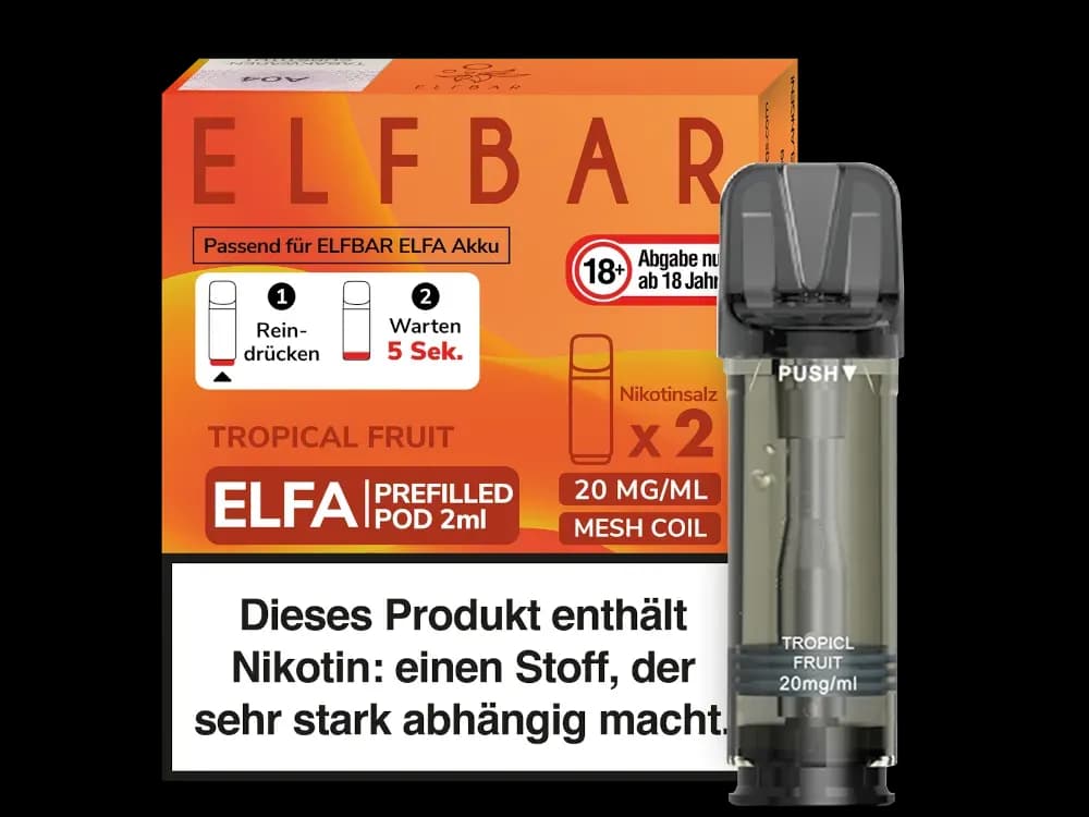 Die Elfbar Elfa Prefilled Pods bieten Nutzern ein praktisches und sicheres Dampferlebnis und sind speziell für den Einsatz mit dem Elfbar Elfa Akku sowie dem Lost Mary Tappo Akku konzipiert. Jede Packung enthält zwei Pods, aus denen Sie aus 27 unterschiedlichen Geschmacksrichtungen wählen können. Gefüllt mit 2 ml Nikotinsalz Liquid – erhältlich in den Varianten 0 mg/ml und 20 mg/ml – überzeugen die vorgefüllten Pods durch ihre einfache Handhabung. Innen ist ein fest verbauter Mesh Coil integriert, der nicht separat ausgetauscht werden kann. Sobald der Pod leer ist oder der Geschmack sich verändert hat, sollte er vollständig ersetzt werden.