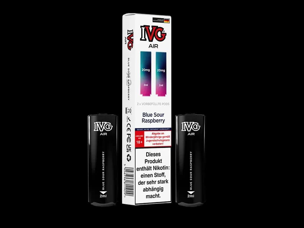 Der IVG AIR Pod ist optimal auf den AIR 2in1 Akku von IVG abgestimmt und wurde speziell für diesen Einsatz entwickelt. Ausgestattet mit einer 1,0 Ohm Mesh Coil und einem Füllvolumen von 2 Millilitern liefert er ein intensives Dampferlebnis dank eines Nikotinsalz-Liquids von 20 mg/ml. Die breite Auswahl aus 15 vorwiegend fruchtigen und fruchtig-kühlen Geschmacksrichtungen ermöglicht das einfache Wechseln der Aromen, da der Akku die Nutzung von zwei AIR Pods gleichzeitig erlaubt – ein Dreh am Mundstück genügt, um den Geschmack zu ändern. Es ist jedoch zu beachten, dass die Pods nicht wiederbefüllbar sind und bei Erschöpfen des Liquids ausgetauscht werden müssen.