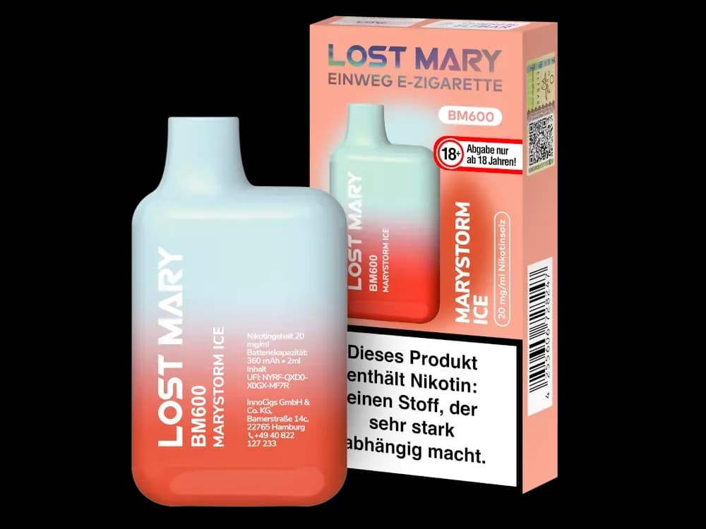 Dabei stehen Ihnen 17 Geschmackssorten zur Auswahl, wie beispielsweise Wassermelone, Apfel, Blaubeere und Erdbeere, aber auch außergewöhnliche Varianten wie Marystorm Ice (mit Energydrink-Note) oder Cotton Candy Ice (mit Zuckerwatte-Twist). Die Lost Mary BM600 Einweg E-Zigarette erfüllt alle relevanten CLP-Verordnungsanforderungen und enthält eine Bedienungsanleitung, in der wichtige Sicherheitshinweise und Entsorgungsanweisungen aufgeführt sind – ein Gerät, das sowohl in Design als auch in Funktionalität überzeugt.