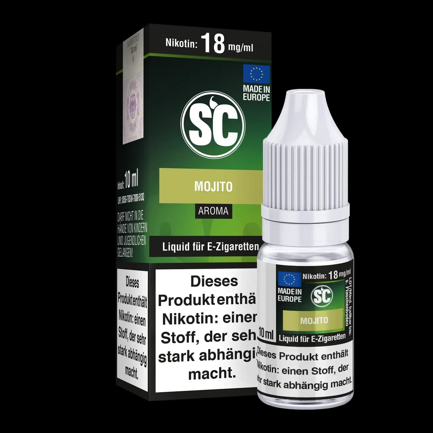 Das SC Mojito E-Zigaretten Liquid vereint hohen Qualitätsanspruch mit dem unverwechselbaren Geschmack eines Mojitos. Das 10-ml-Set ist mit verschiedenen Nikotinstärken (0, 3, 6, 12 und 18 mg/ml) erhältlich und eignet sich sowohl für das gemütliche als auch das anspruchsvolle Sub-Ohm-Dampfen – kompatibel mit sämtlichen E-Zigaretten und Verdampfern. Die sorgfältig abgestimmte Basis setzt sich zu 50% aus Propylenglykol, 38% pflanzlichem Glycerin und 12% demineralisiertem Wasser zusammen, was ein ausgewogenes Geschmackserlebnis garantiert.