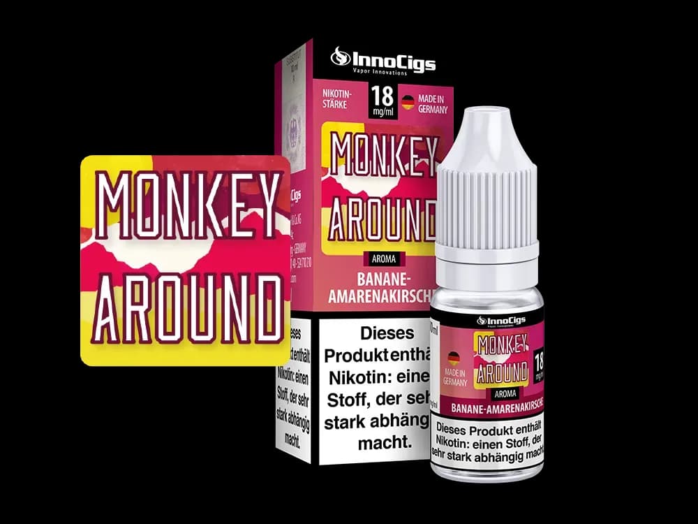 Entdecken Sie das InnoCigs E-Zigaretten Liquid "Monkey Around" – ein 10-ml-Erlebnis, das den unverwechselbaren Geschmack von Amarenakirschen und Bananen harmonisch vereint. Dieses Liquid ist in variablen Nikotinstärken erhältlich – von komplett nikotinfrei bis hin zu 3, 6, 9 oder 18 mg/ml – und bietet Dampfern eine breite Auswahl. Die Basis jedes Liquids besteht zu 55 % aus Propylenglycol, 35 % aus Glycerin und 10 % aus Wasser, veredelt mit einem intensiven Aroma, das sowohl Einsteiger als auch erfahrene Nutzer überzeugt.