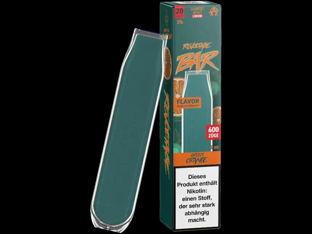 Die Revoltage Bar Einweg E-Zigarette besticht durch ihr praktisches Design und vielfältige Geschmacksrichtungen. Jede Einheit ist mit 2 ml Liquid ausgestattet, das sowohl in nikotinfreier Ausführung als auch mit 20 mg/ml Hybrid-Nikotinsalz erhältlich ist. Im Inneren verbirgt sich ein fest verbauter 450 mAh Akku, der bis zu 600 Züge ermöglicht. Als Einwegprodukt kann die E-Zigarette weder nachgefüllt noch der Akku ausgetauscht werden, weshalb eine ordnungsgemäße Entsorgung nach Gebrauch unbedingt zu beachten ist. Die betont fruchtigen Aromen sprechen besonders Liebhaber intensiver Geschmackserlebnisse an.